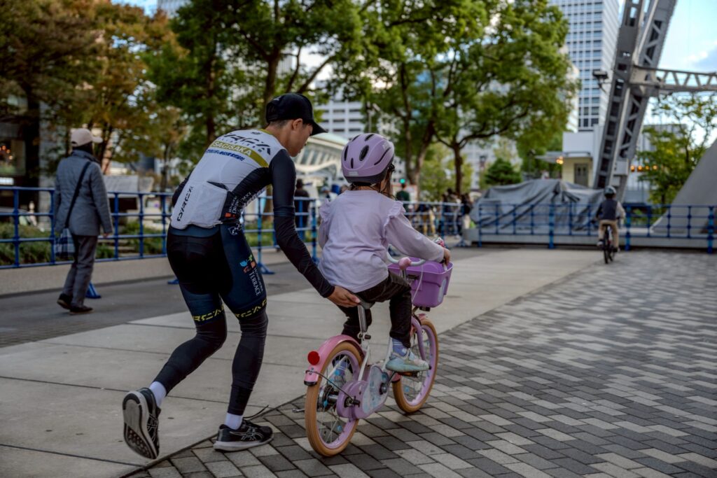 「できない」が「できた」に変わる、一生忘れない感動を。お子さまが補助輪を外しても安全に楽しく自転車に乗れるように、ロードレースで活躍する自転車選手がやさしく個別指導します。
