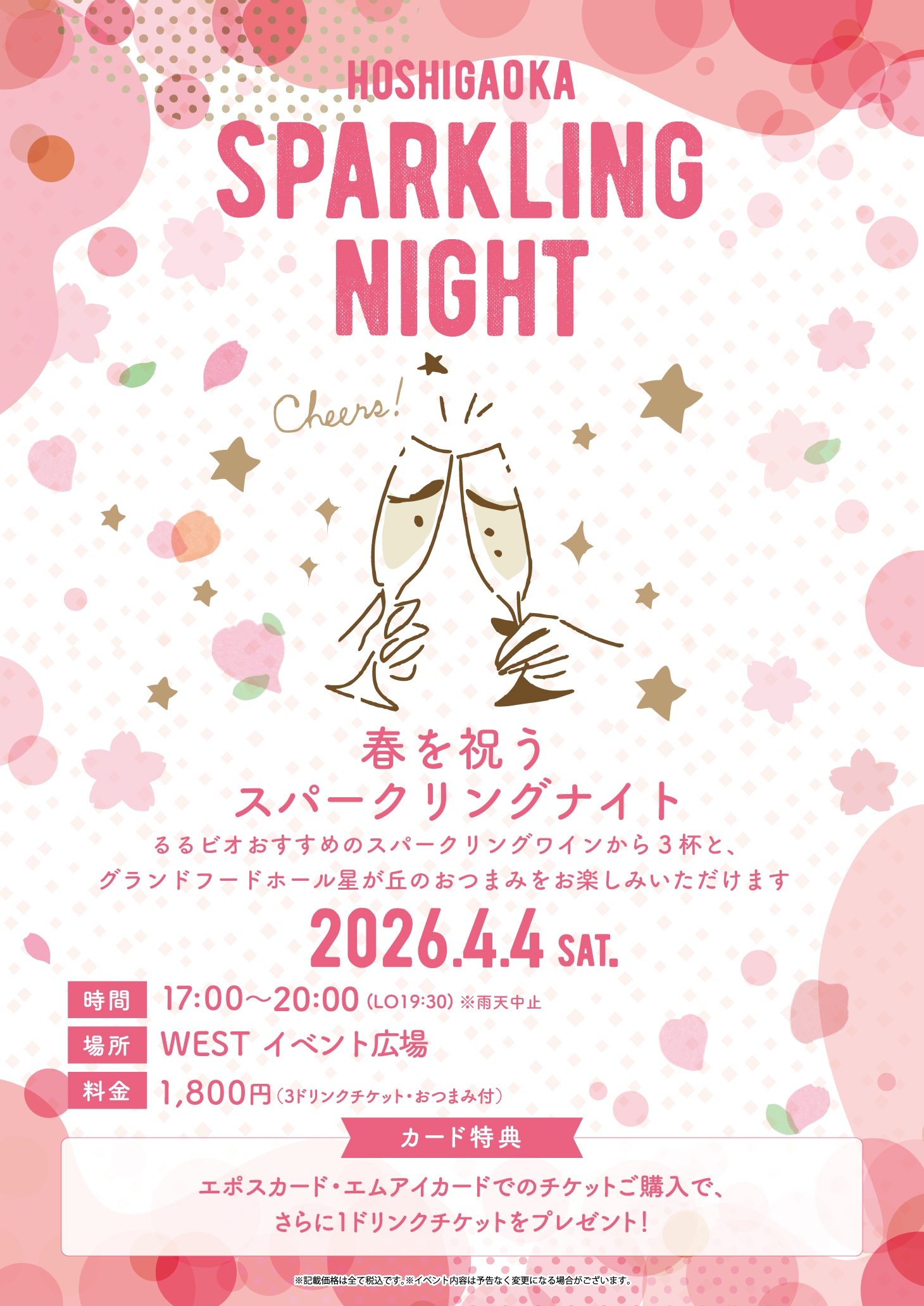 日 時:2026年4月4日(土)17:00~20:00(LO19:30)※雨天中止