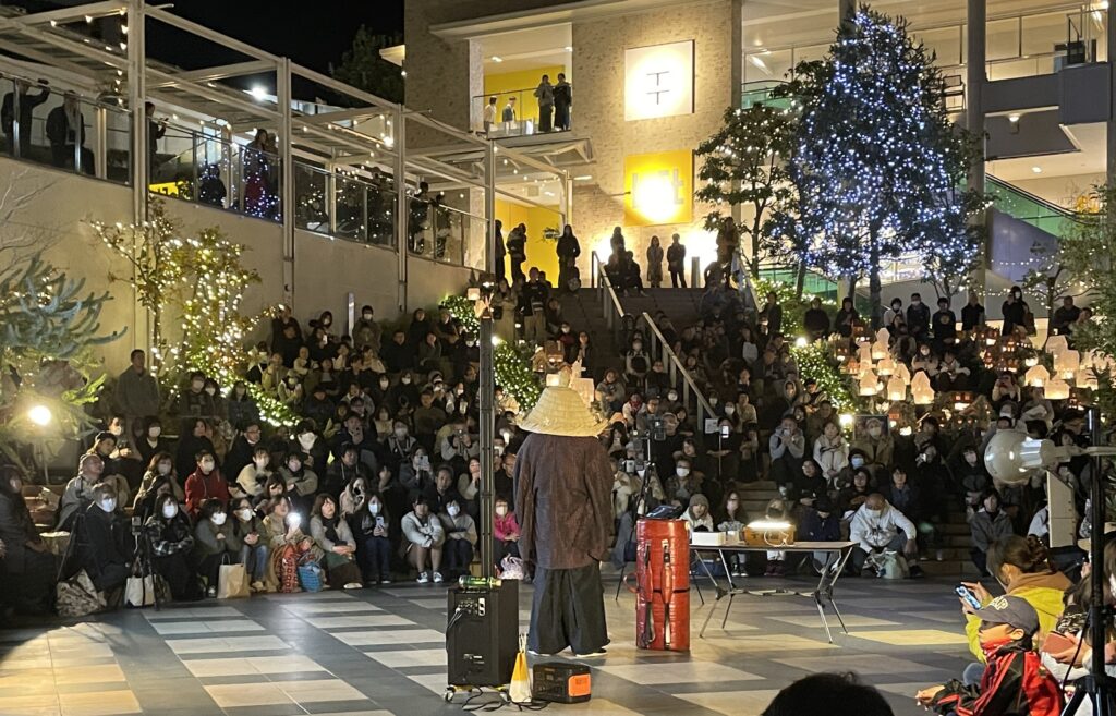 名古屋の街角でサックスを吹く、謎の侍。