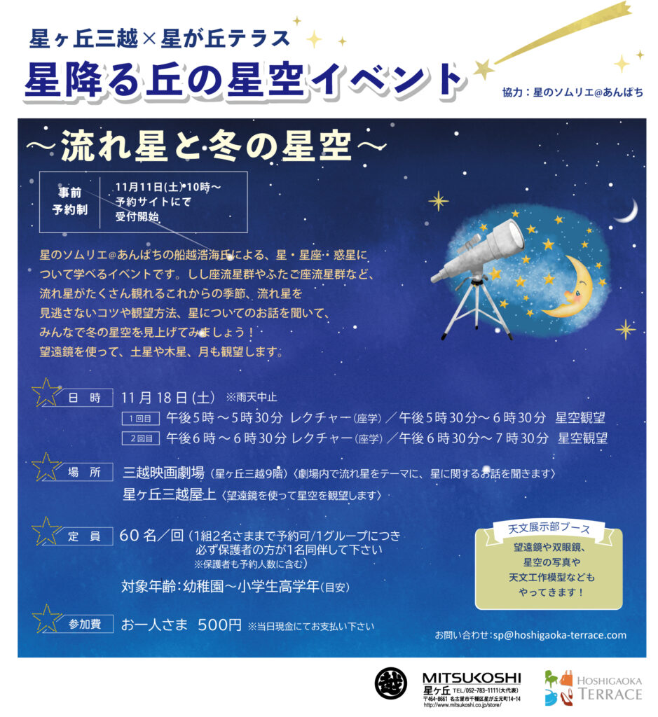 星ヶ丘三越×星が丘テラス 星降る丘の星空イベント☆彡 ~流れ星と冬の星空 ~(事前予約制)