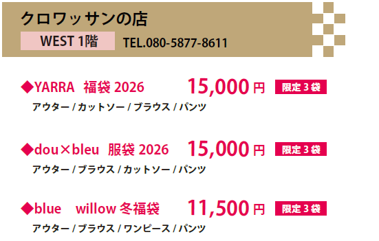 ※丸福袋二〇二六 11,000円は完売いたしました。